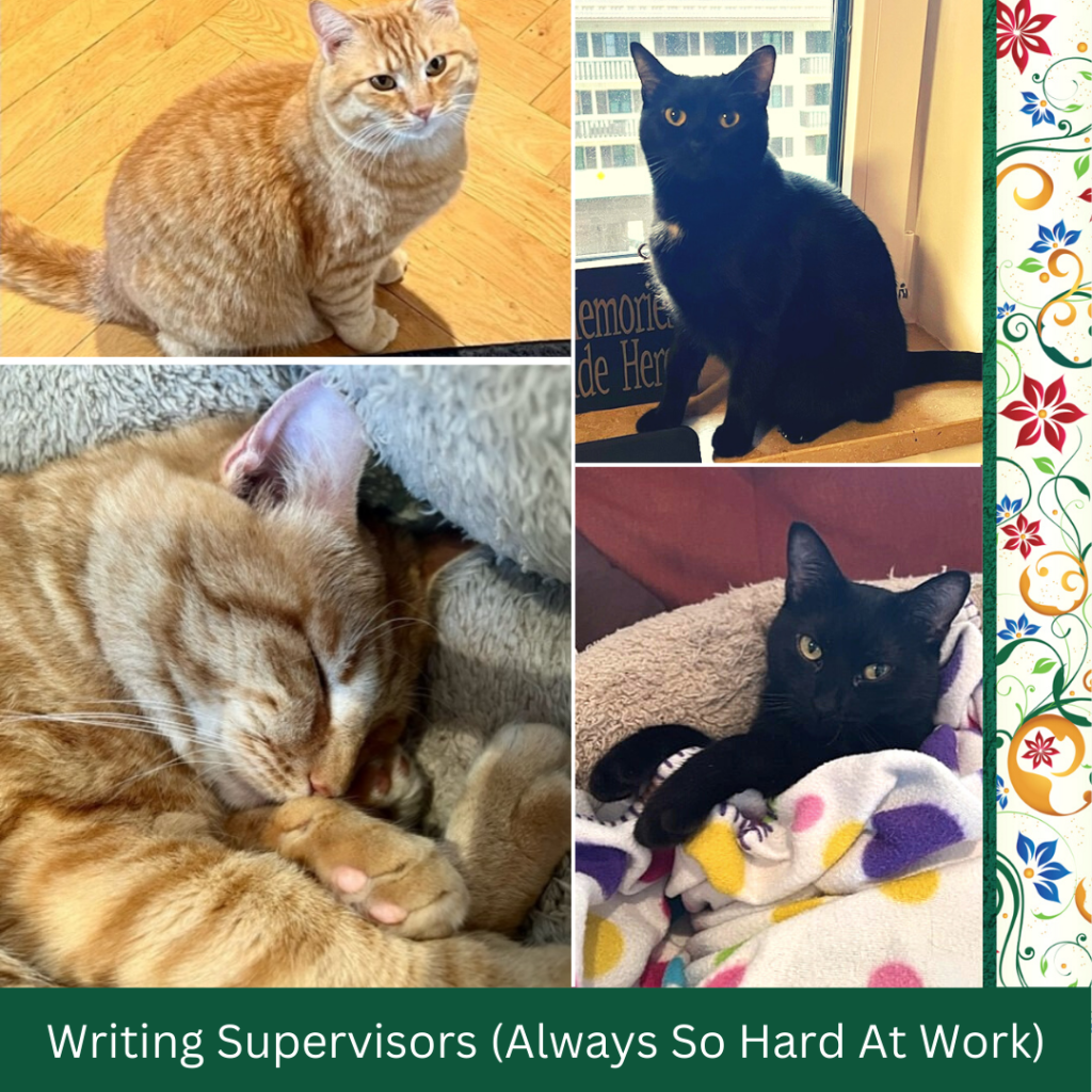 I have some writing friends who can write anywhere, from a crowded coffeehouse to throwing open a notebook at their child’s sports practice or while listening to music to get into the zone, which I think is brilliant. I’ve done that too – you never know when a plot point or a snippet of dialogue will flash through your mind, and those are the moments where I swiftly type out an email to myself on my phone – however, I know that I work best in a quiet space, preferably near an open window, with space (of course) for my furry writing supervisors.